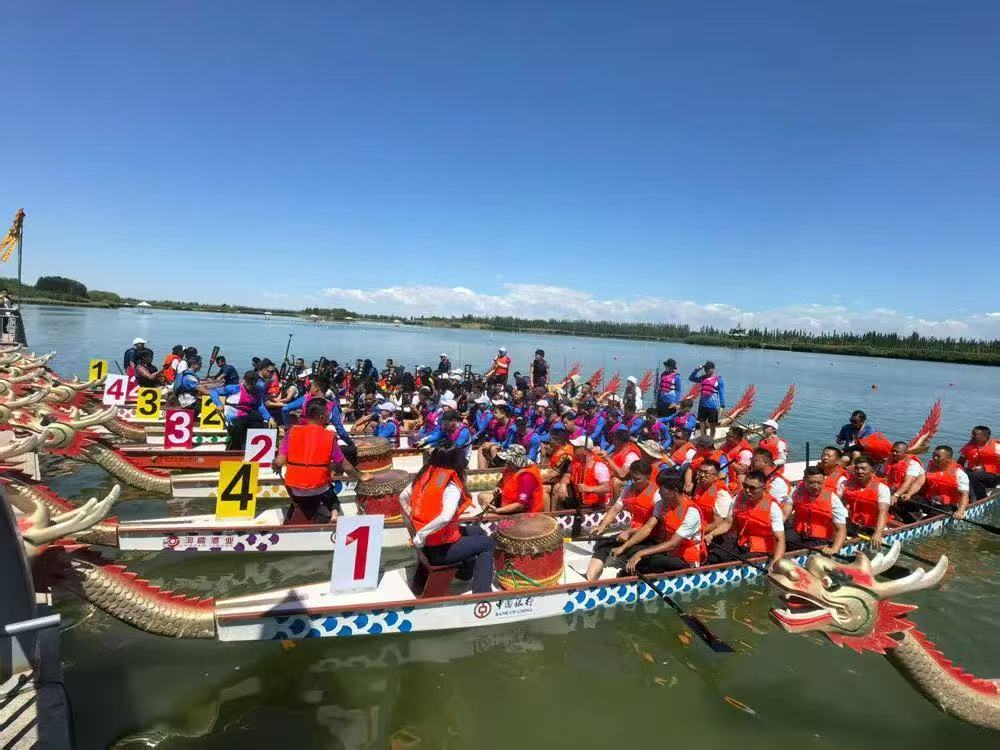 7月20日,2025全国民族民间龙舟赛(巴彦淖尔・磴口站)在磴口县北海湿地公园击鼓开赛。