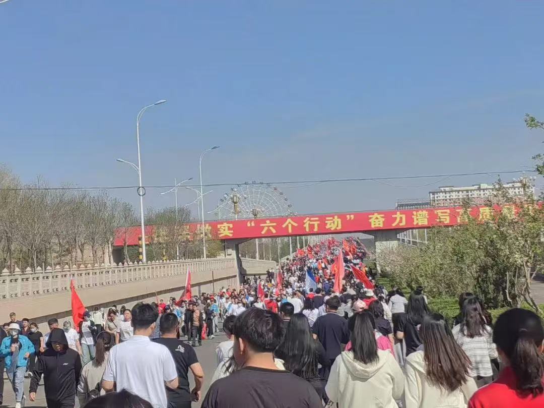 开幕式后,进行了“全民健步走”启动仪式,本次活动共有来自临河区人民政府,市直行政、企事业单位,国家、自治区驻市单位和各人民团体160支代表队一万余人参加,本次活动以文博中心为起点,由五一街向东,再由金川大道向南,随后在金川大桥折返,最后回到文博中心结束,全程5公里。